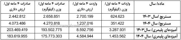 اختصاصی بسپار/ آمار صادرات و واردات صنعت مستربچ و آمیزههای پلیمری ایران در 4 ماهه نخست 1404