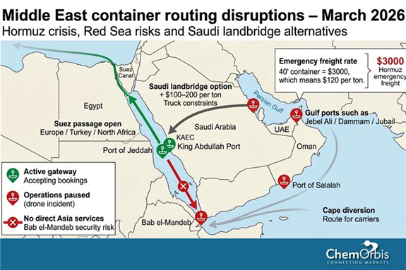 در هفتههای ابتدایی جنگ، اختلال در بنادر خلیج فارس مانند الجبیل، دمام و جبل علی، موجب کاهش شدید صادرات مواد پتروشیمی شد. اکنون، پس از دو ماه، بخشی از مسیرها بهصورت محدود فعال شدهاند، اما: