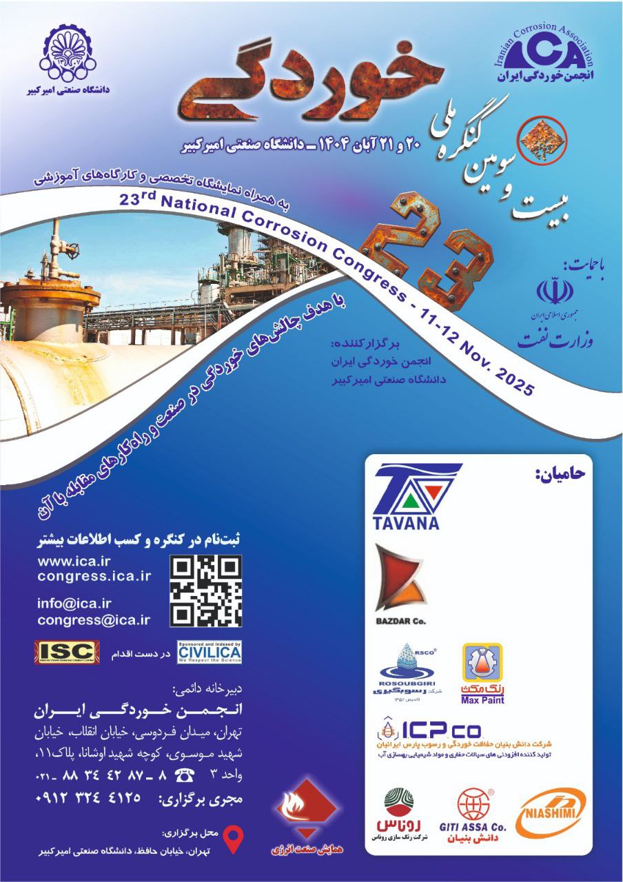 بسپار/ایران پلیمر بیست و سومین کنگره ملی خوردگی با هدف شناخت چالشهای خوردگی در صنعت و راهکارهای مقابله با آن در تاریخ 20 و 21 آبان ماه 1404 در مرکز همایشهای دانشگاه صنعتی امیرکبیر با حمایت وزارت نفت برگزار می شود.